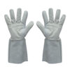 Descrição resumida: Luva de vaqueta modelo cobertura, palma e dorso com cano de raspa de 15cm e ajuste no dorso para fixação.